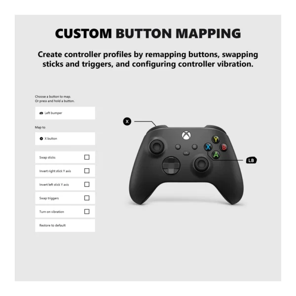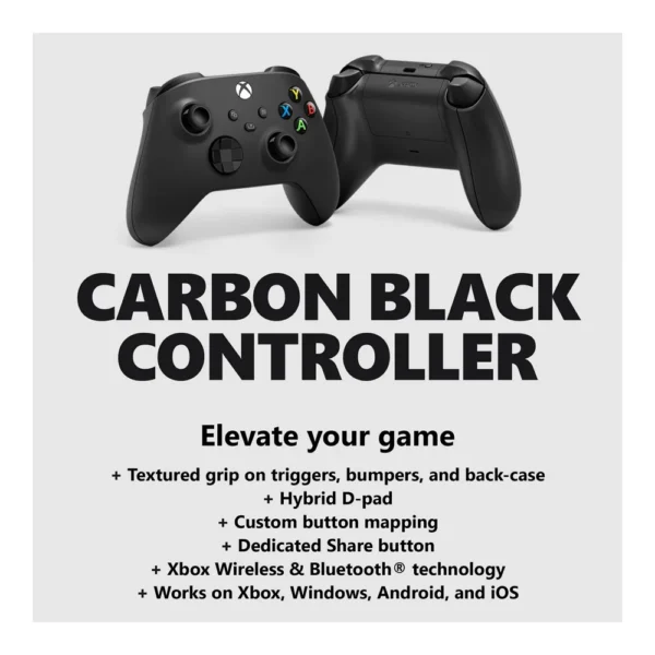 • Experience the modernized design of the Xbox Wireless Controller in Carbon Black.